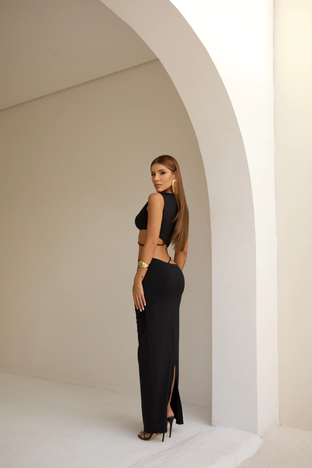Encante-se com o CONJUNTO MICHELE Este sofisticado conjunto de cropped e saia é a escolha perfeita para quem valoriza estilo e conforto. A saia apresenta um elegante detalhe de franzido e faixa assimétrica, destacando a silhueta de maneira moderna e feminina. O cropped acompanha o mesmo acabamento, criando um visual harmonioso e cheio de personalidade.